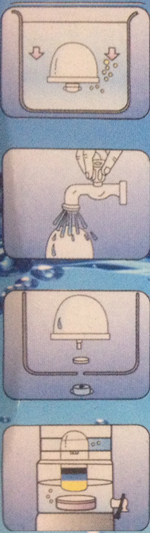 3.AUウォーターサーバー全体を組み立て、上容器に『Minepon』を添加した水道水を入れます。